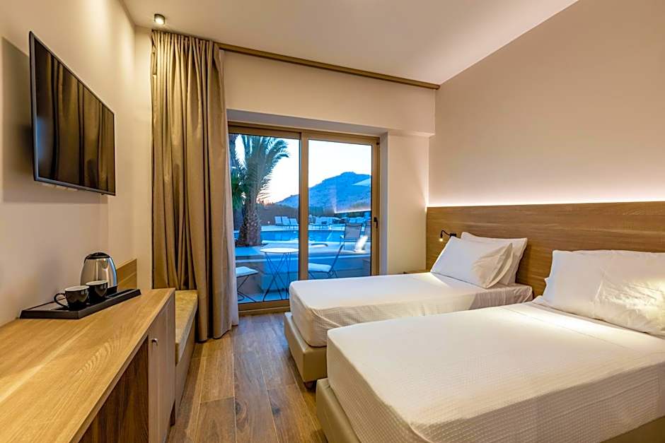 This twin/double room's special feature is the pool with a view. This air-conditioned twin/double room includes a flat-screen TV with cable channels, a private bathroom as well as a terrace with sea views.